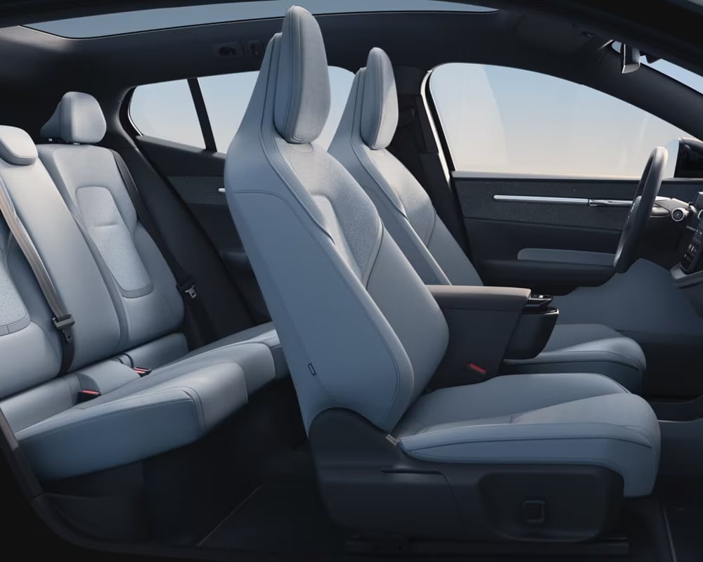Inside, it’s everything you’d expect from Volvo—calm, clutter-free, and focused on comfort. Recycled materials and natural textures help it feel clean and conscious. The floating centre console and slim dashboard open up the space, giving it a surprisingly airy feel for such a compact footprint.