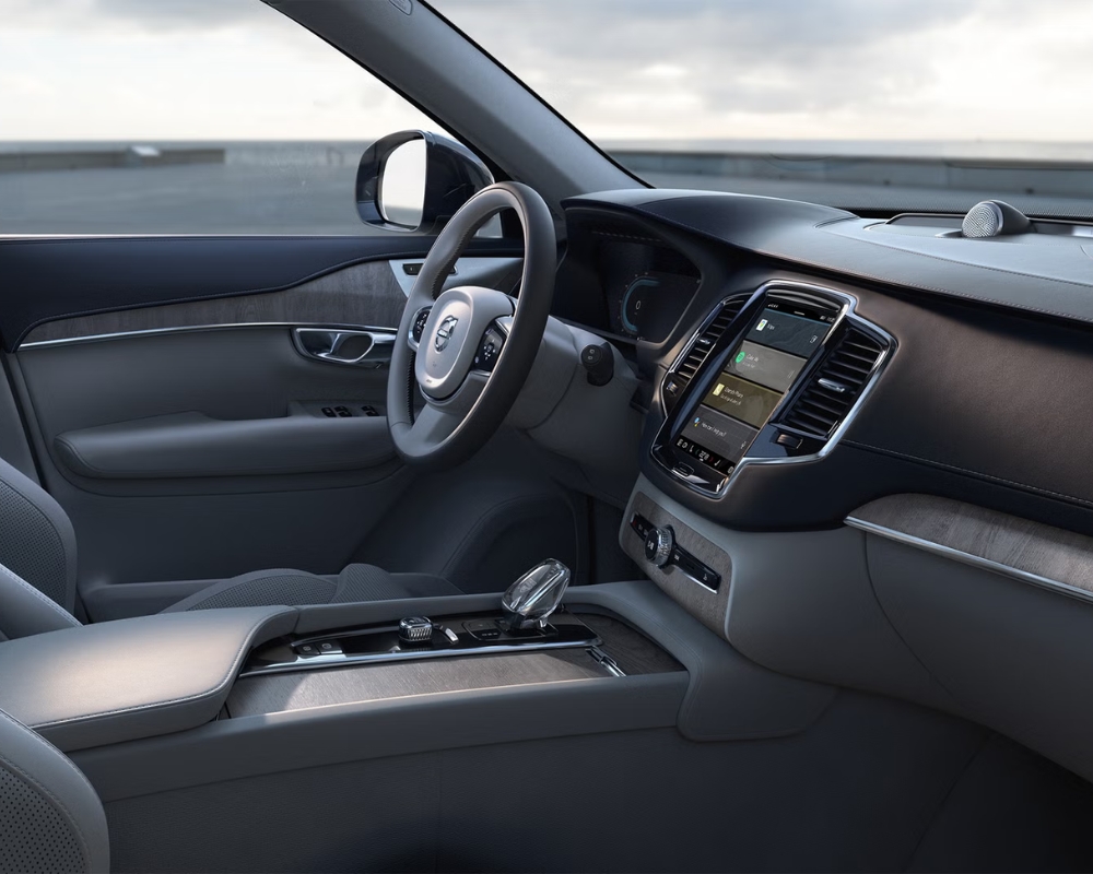Step inside the Volvo XC90, and you'll immediately feel the blend of comfort and sophistication. Every detail has been specifically tailored to create a serene and inviting space. Premium Nappa leather, genuine wood trims, and a crystal gear shifter elevate the cabin's aesthetic, while the minimalist dashboard design ensures a clutter-free environment.