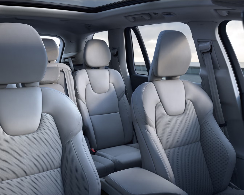 The spacious three-row seating configuration ensures that every passenger enjoys first-class comfort. With ample legroom, available massage functions, and advanced noise insulation, the XC90 transforms even the longest drives into a relaxing experience. A panoramic sunroof further enhances the cabin’s airy feel, filling it with natural light and creating an open, welcoming atmosphere.